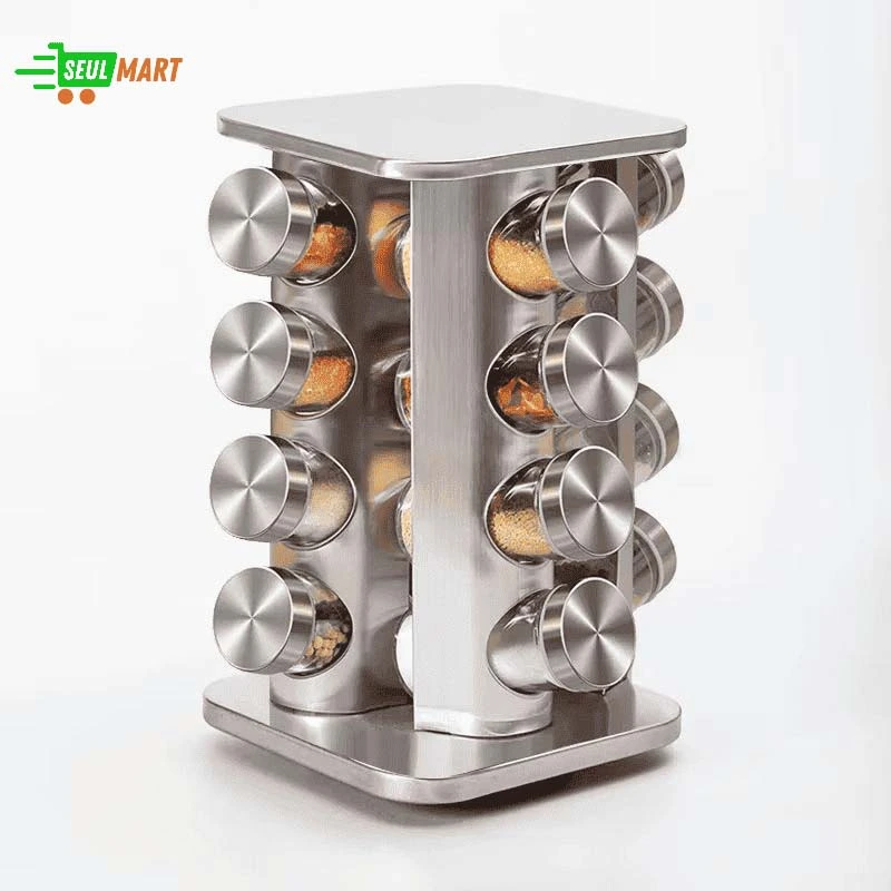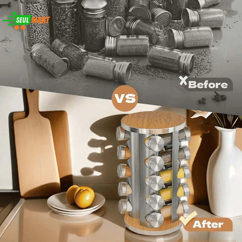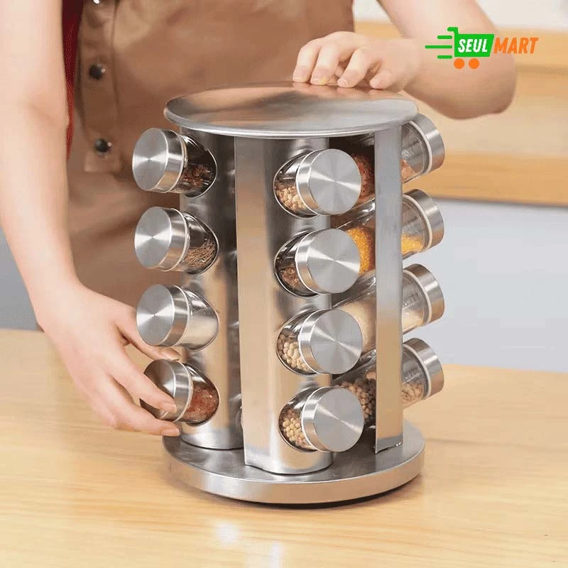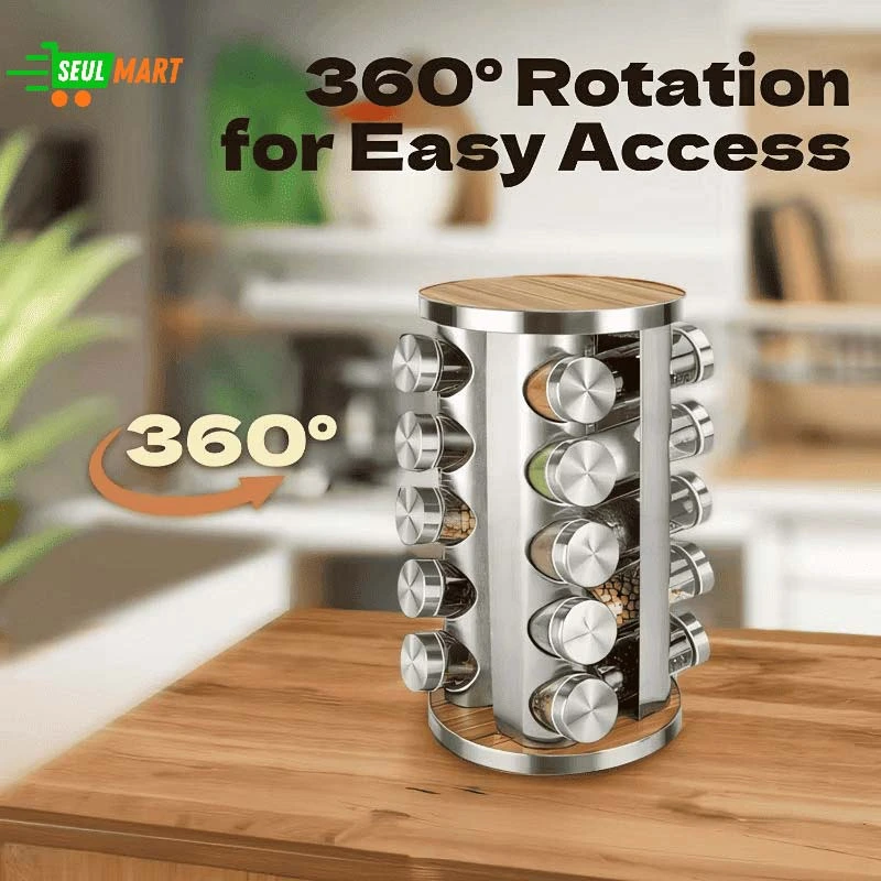 Multi-Layer Rotating Seasoning Rack with Jars